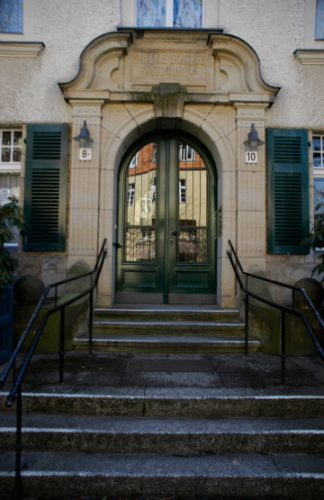 Durch das Testament der Stifterin Sidonie Scharfe (1834-1909) wurde der Bau eines Hauses in der Scharfestraße ermöglicht. Das erste Gebäude wurde 1914 eingeweiht. Von Anfang an war die Nachfrage größer als das Angebot, ein zweites, größeres Haus dringend erwünscht. Durch die Tatkraft von Frieda Köpke und die finanzielle Hilfe des Zehlendorfer Bezirks gelang es 1926, ein großes Nachbargrundstück zu erwerben und nach den Plänen des namhaften jüdischen Architekten Bruno Ahrens das heute unter Denkmalschutz stehende schöne Haus zu bauen. Im zweiten Weltkrieg wurde das neue Haus von Bomben schwer getroffen, der expressionistische Giebel und der Saal zerstört. In den fünfziger Jahren gab es eine erste Reparatur.